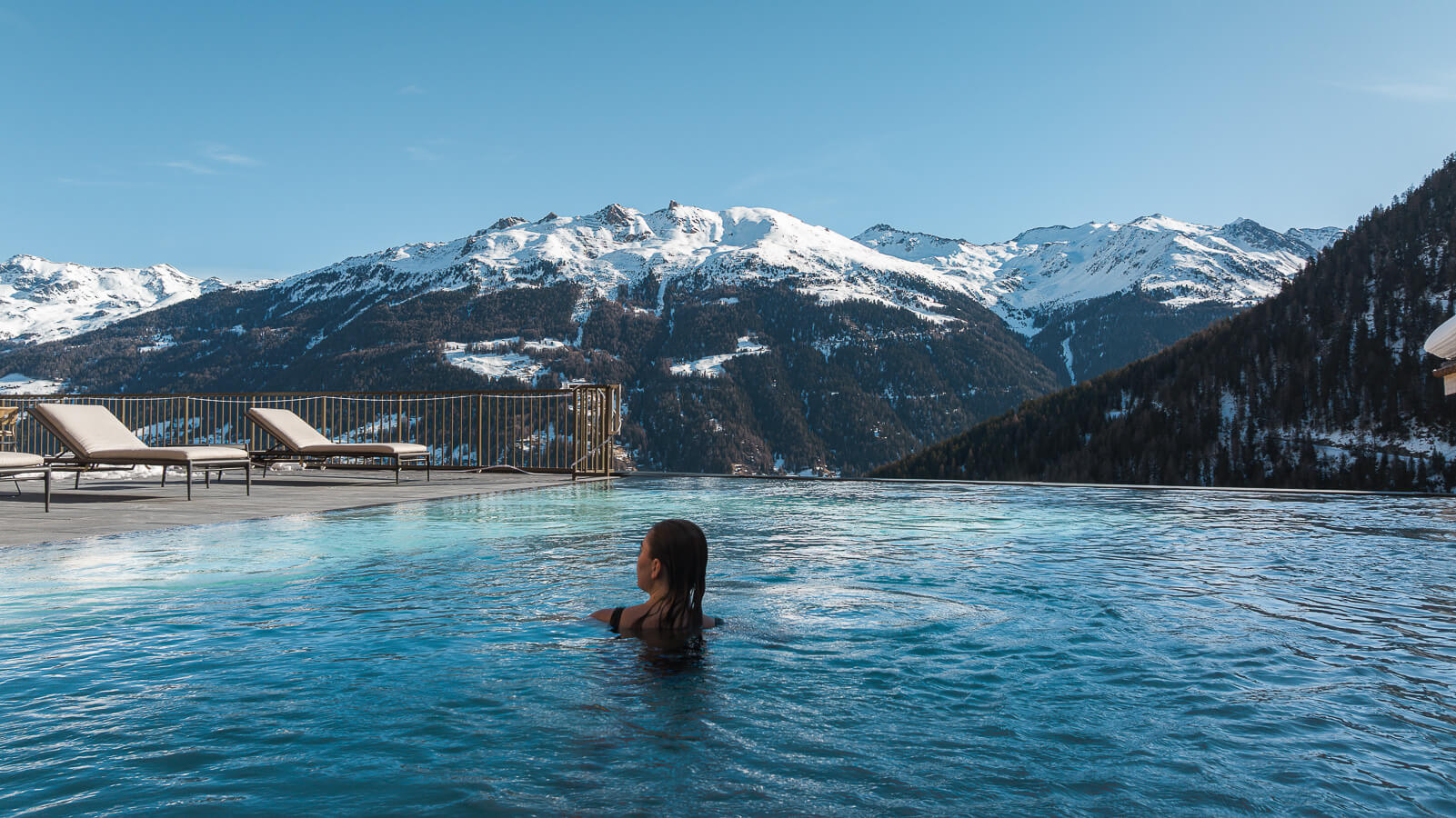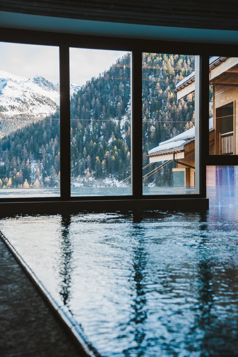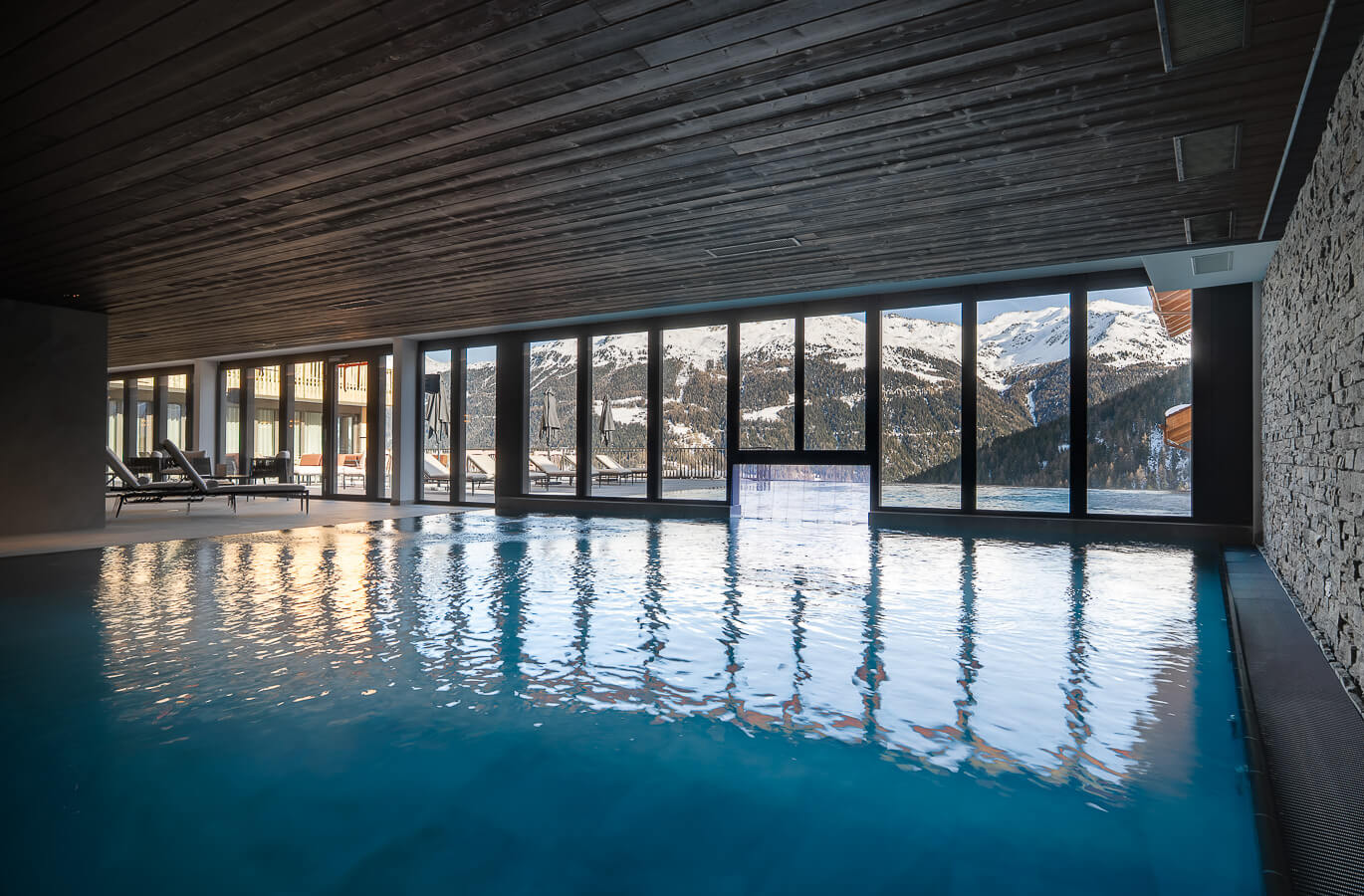 Gönnen Sie sich einen Moment purer Entspannung im Wellnessbereich der 5-Sterne- Ferienanlage Guernerés in Grimentz. Lassen Sie sich von der wohltuenden Wärme des 20 x 9 Meter großen, beheizten Innen- und Außenpools umhüllen, einer wahren Oase der Ruhe. Verlängern Sie das Erlebnis im Nassbereich zwischen Hammam, Sauna, Erlebnisduschen und Entspannungsbereich mit Liegestühlen. Im Außenbereich können Sie sich auf der Terrasse mit Blick auf die umliegenden Berggipfel erholen. Ein elegantes und intimes Ambiente, ideal, um nach einem Tag in den Bergen neue Energie zu tanken und im Herzen der Schweizer Alpen Ruhe, Ausgeglichenheit und Entspannung zu finden.