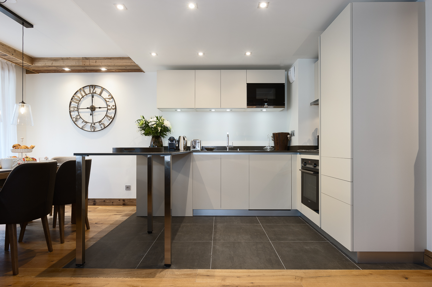 Diese Wohnung verfügt über ein Schlafzimmer mit einem Doppelbett (160×200), ein Schlafsofa im Wohnzimmer sowie über zwei Badezimmer. Der Wohnbereich ist mit einer Sitzecke und einem Fernseher sowie einer komplett ausgestatteten offenen Küche eingerichtet. Ein Balkon rundet den Wohnraum ab. Zur Ausstattung gehören Haushaltsgeräte wie ein Geschirrspüler, eine Nespresso-Kaffeemaschine, Küchenutensilien usw.