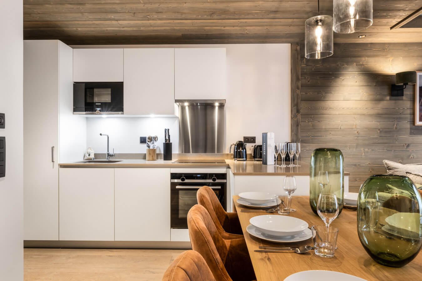 Diese Chalet-Wohnung verfügt über ein Schlafzimmer mit Doppelbett (160 × 200 cm), ein Schlafzimmer mit Einzelbett (90 × 200 cm) und Etagenbett (90 × 200 cm) sowie über ein Badezimmer mit Dusche. Der Wohnbereich bietet eine Sitzecke mit Fernseher, eine voll ausgestattete Küche und zwei Terrassen, darunter eine nach Süden ausgerichtete Terrasse mit freiem Blick auf den Berg Sorebois. Das Chalet ist nach Süden und Norden ausgerichtet. Zur Ausstattung gehören Haushaltsgeräte wie Waschmaschine, Geschirrspüler, Nespresso-Kaffeemaschine, notwendige Küchenutensilien usw.