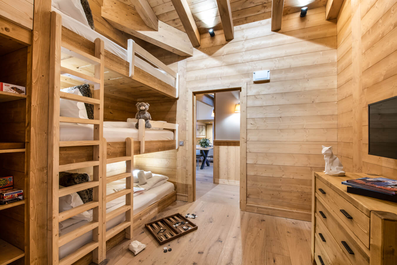 Diese Chalet-Wohnung verfügt über ein Schlafzimmer mit Doppelbett (160 × 200 cm), ein Schlafzimmer mit Etagenbett für 3 Kinder sowie über ein Badezimmer mit Dusche. Der Wohnbereich bietet eine Sitzecke mit Fernseher, eine voll ausgestattete Küche, einen Holzofen und zwei Terrassen, darunter eine nach Süden ausgerichtete Terrasse. Das Chalet ist nach Süden und Norden ausgerichtet. Zur Ausstattung gehören Haushaltsgeräte wie Geschirrspüler, Nespresso-Kaffeemaschine, notwendige Küchenutensilien usw.
