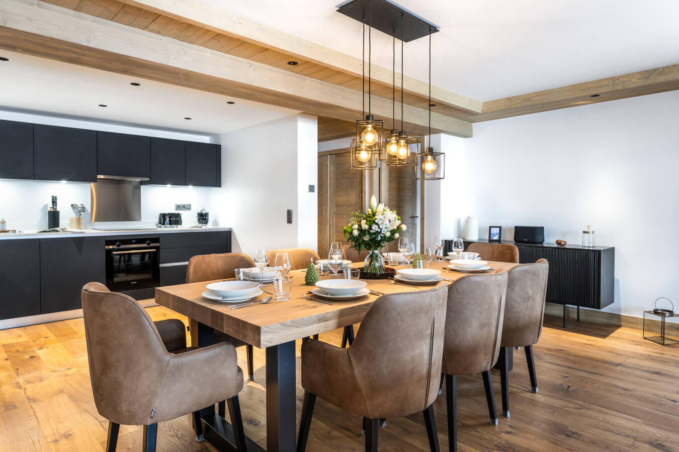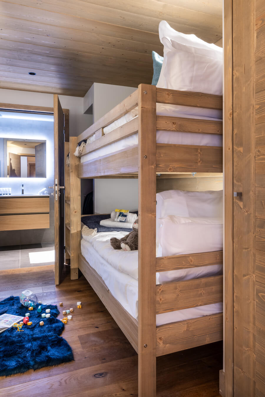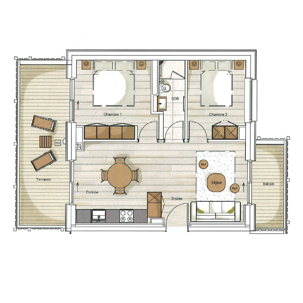 Diese Chalet-Wohnung verfügt über zwei Schlafzimmer mit Doppelbett (180 × 200 cm & 140 × 200 cm) sowie über ein Badezimmer mit Dusche. Der Wohnbereich bietet eine Sitzecke mit Fernseher, eine voll ausgestattete Küche, einen Holzofen und zwei Balkone, darunter ein nach Süden ausgerichteter Balkon. Das Chalet ist nach Süden und Norden ausgerichtet. Zur Ausstattung gehören Haushaltsgeräte wie Geschirrspüler, Nespresso-Kaffeemaschine, notwendige Küchenutensilien usw.
