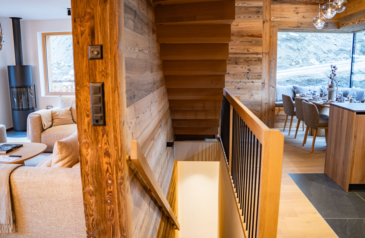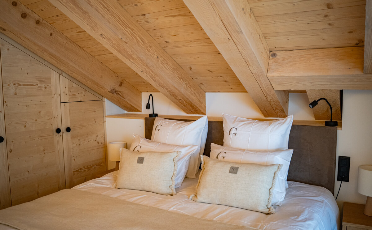 Dieses freistehende Chalet auf drei Ebenen verfügt über drei Schlafzimmer mit Doppelbett (180 × 200 cm), ein Zimmer mit zwei Etagenbetten sowie drei Badezimmer mit Dusche und Badewanne. Der Wohnbereich bietet eine Sitzecke mit Fernseher, eine voll ausgestattete Küche, einen Holzofen und Außenbereiche, darunter eine nach Süden ausgerichtete Terrasse mit freiem Blick auf Sorebois. Das Chalet ist rundum ausgerichtet, wodurch sich Licht und Aussicht im Tagesverlauf ständig verändern. Zur Ausstattung gehören Haushaltsgeräte wie Waschmaschine und Trockner, Geschirrspüler, Nespresso-Kaffeemaschine, notwendige Küchenutensilien usw.