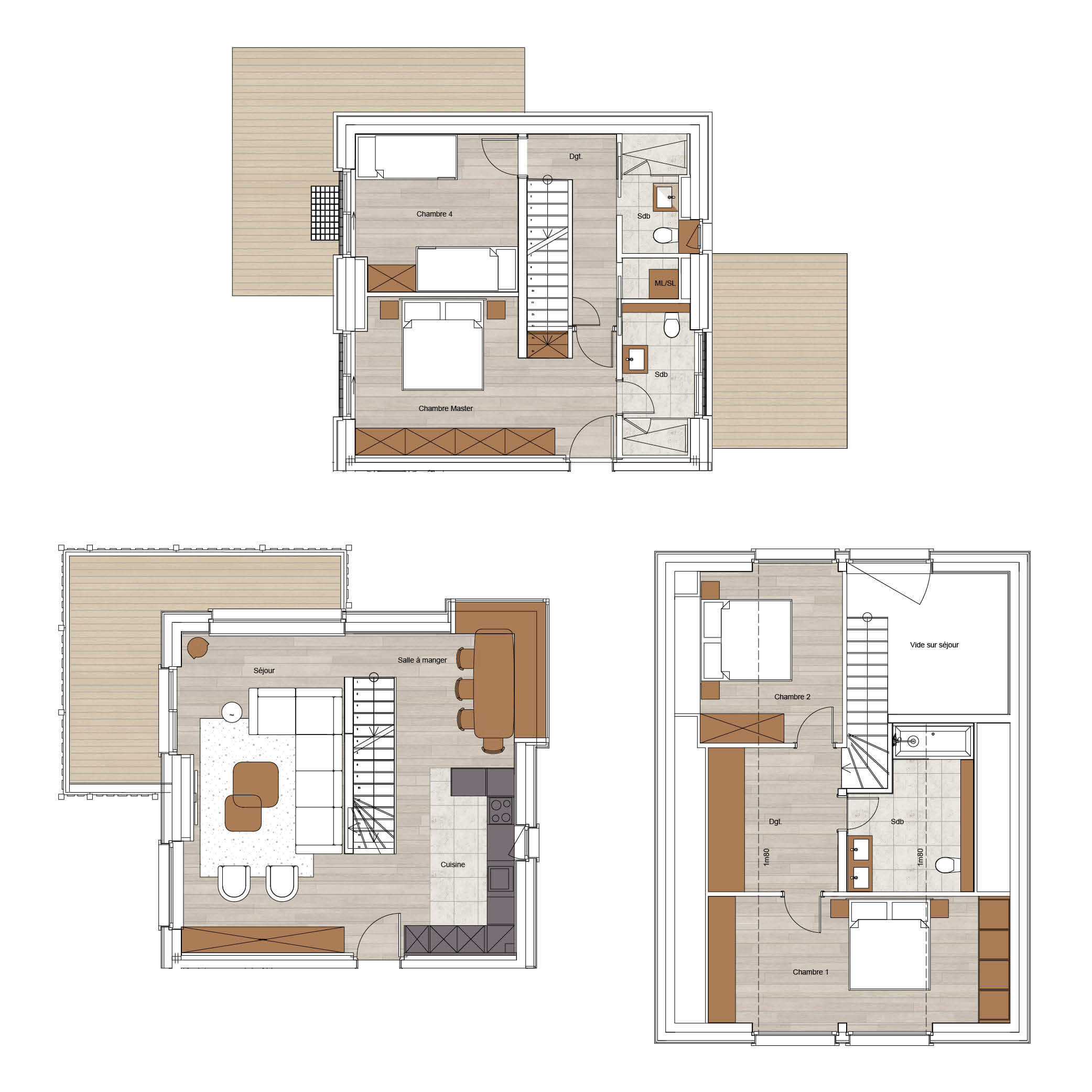 Ce chalet sur trois étages vous accueille pour un séjour inoubliable à la montagne. Parcourez son plan afin de visualiser son organisation intérieure et apprécier ses vastes espaces de vie.